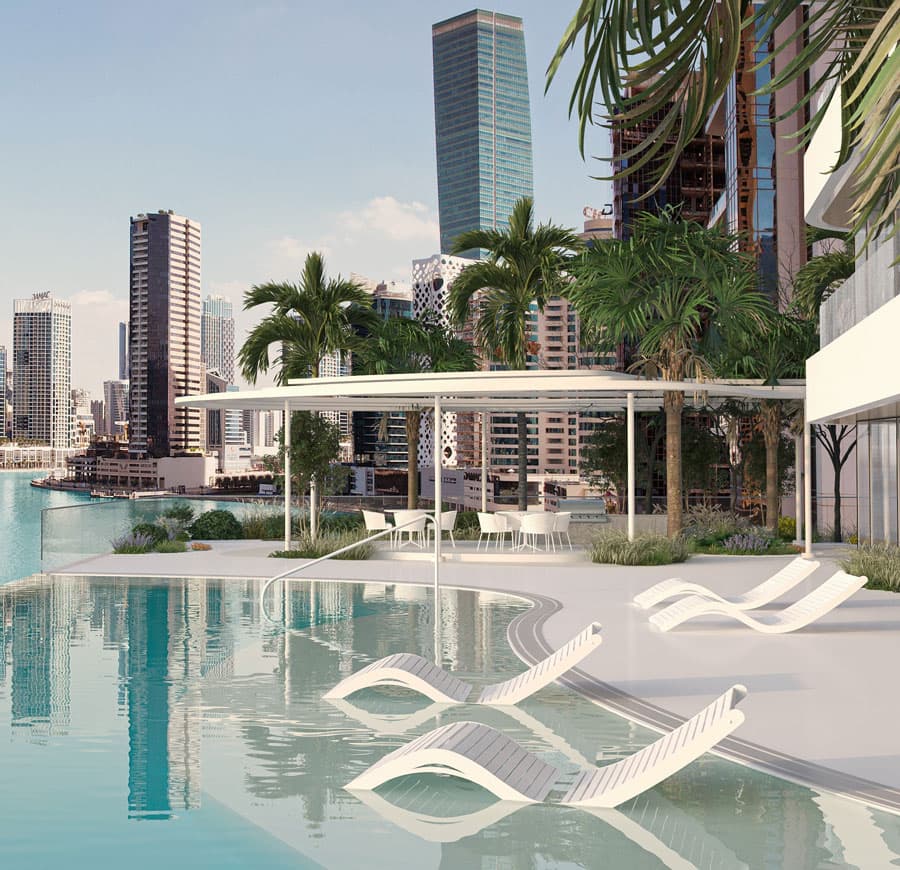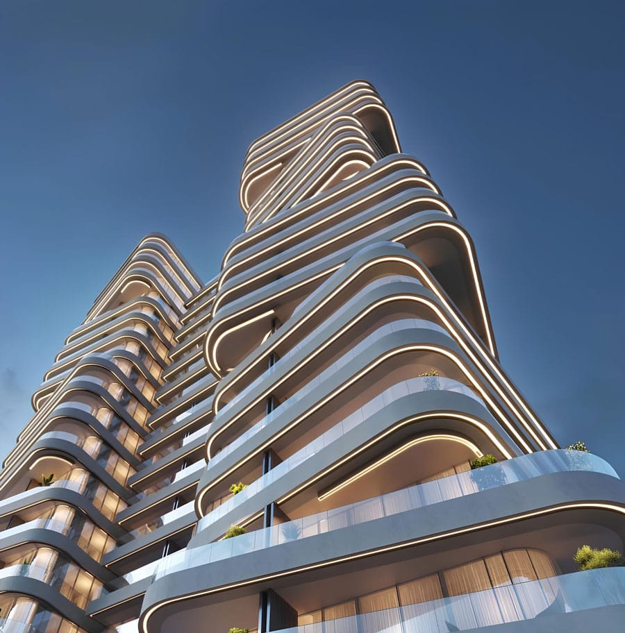 DG1 is a prestigious project from the developer DarGlobal, located in the heart of Business Bay, one of the most attractive areas of Dubai. This complex consists of two spectacular towers, each of which includes: a basement floor, a ground floor, three podium floors and nineteen residential floors, offering a choice of studios and 1-3-room apartments. The unique architectural design is a masterpiece: the towers are elegantly arranged on a vast platform supported by stylish columns. Asymmetrical shapes, intricate lines and a light color palette give the building a futuristic charm, making it an outstanding element of the city panorama.