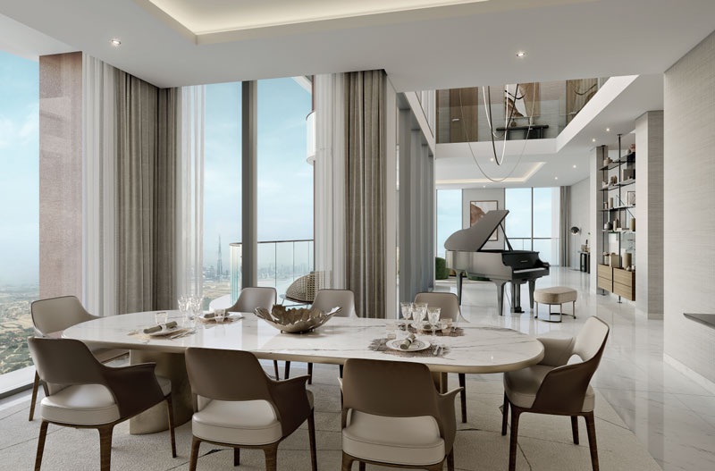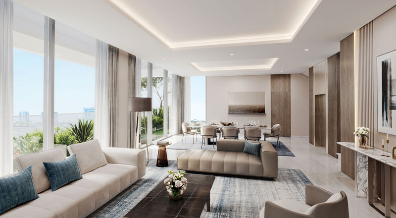Takaya Tower, a residential development by developer Union Properties located in the Motorcity neighborhood, is the epitome of modern architecture and elegant design. The architecture of Takaya Tower combines minimalism and functionality with an emphasis on high quality materials and thoughtful details. The complex is connected to other Takaya properties by a grand podium.